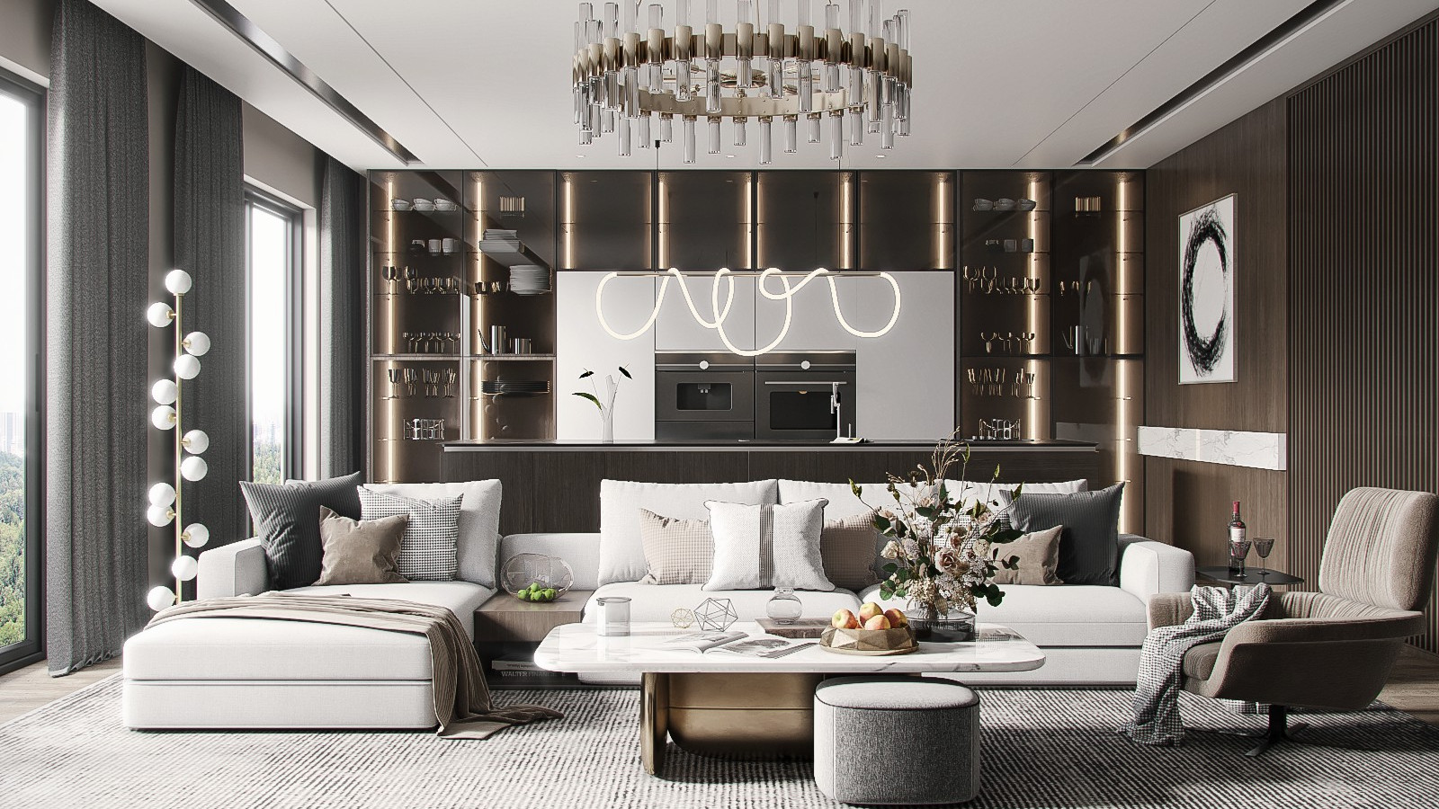 在简约、朴素的温暖中回归生活本意,静谧、舒适、不张扬,却格调满满,你可以永远相信福建布加尼新材料有限公司全屋家居为业主量身定制的房屋设计!摒弃繁杂,简单色调,简约、宁静又凸显质感。整屋无吊灯、无主灯、墙顶一体,赋予空间纯碎高级的艺术氛围。收纳柜及卧室门均采用一门到顶隐形门,防止视觉空间被分割的零碎感。客厅去电视化,超长收纳柜+投影幕布代替,将更多空间释放给家人互动。